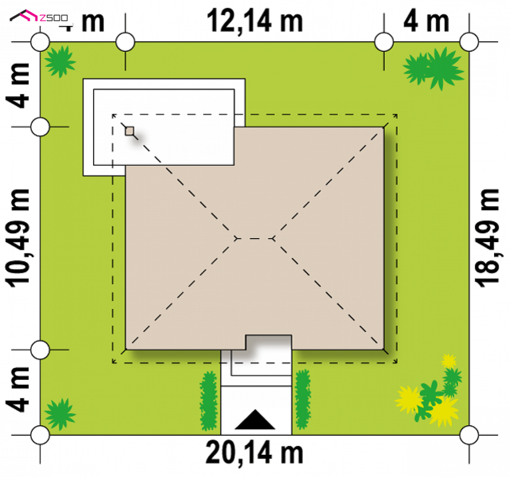 Szerokość 20,14 m Długość 19,49 m Wymiary elewacji frontowej 12,14 m - Item 2